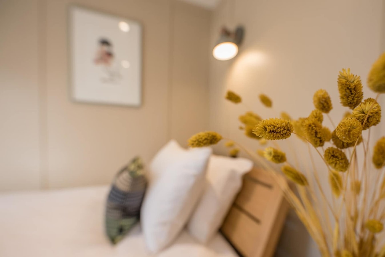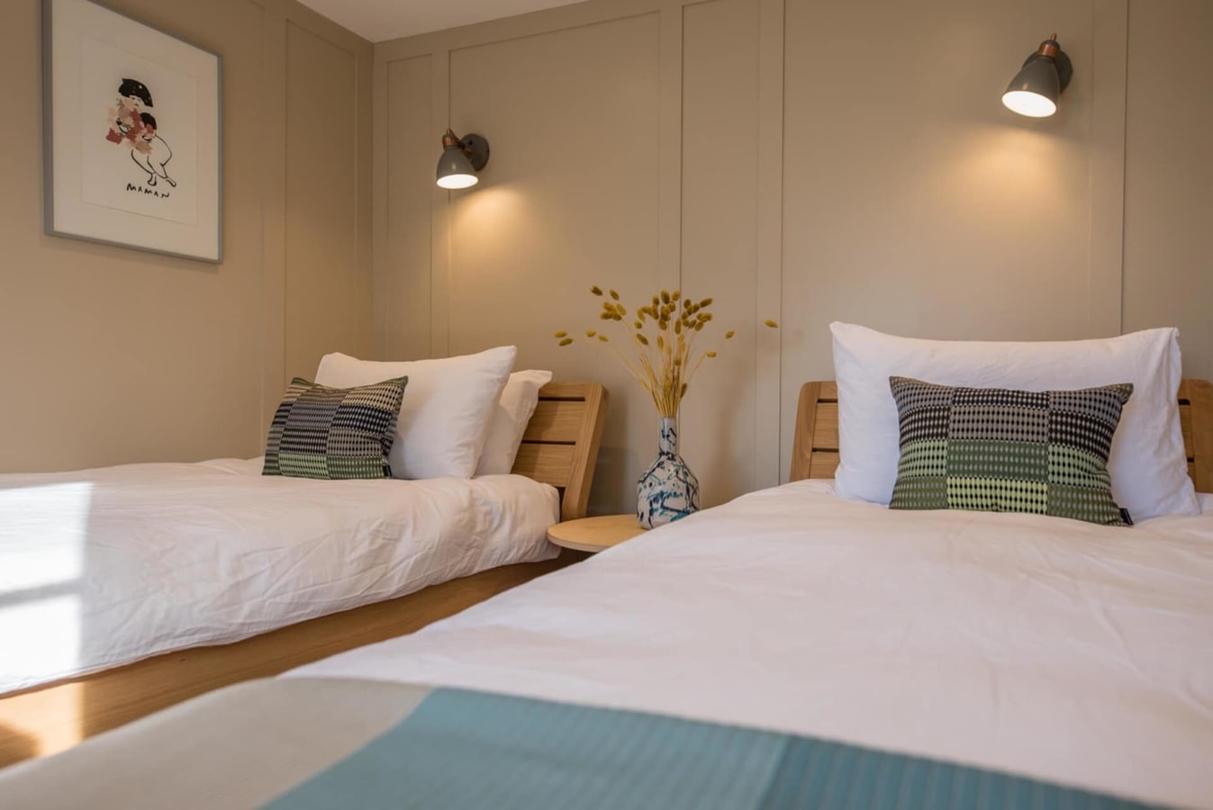 Willow Lodge is fitted with twin beds with memory foam mattress to ensure you have a good night's sleep; a bedside table with a lamp; an open wardrobe with hangers and a shelf; a radiator to keep you cosy on chilly nights; a hairdryer; sockets and a USB port; and, finally your own Nespresso machine with mugs, coffee, milk provided.